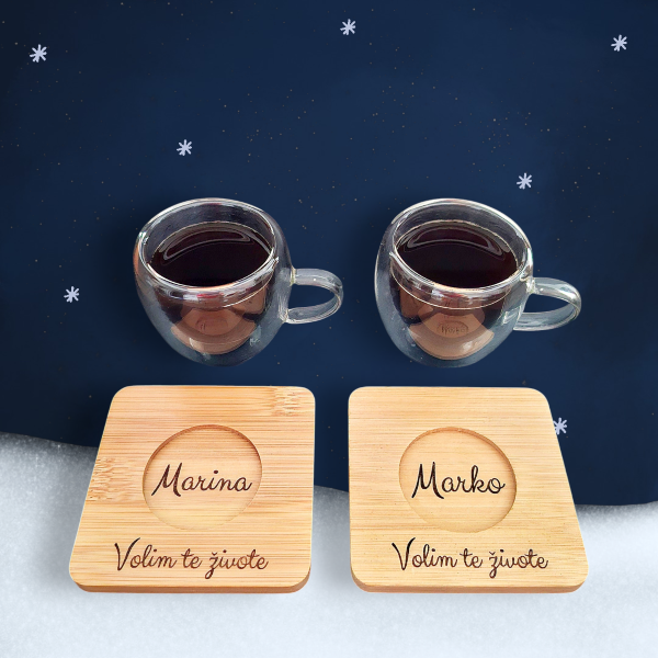 Set šolja za kafu sa dvostrukim zidom i podmetačima je idealan i originalan poklon kojim ćete obradovati sve ljubitelje kafe. Personalizovan poklon je najbolji poklon koji možete primiti ili dati. Na vama je samo da odaberete tekst ili sliku.